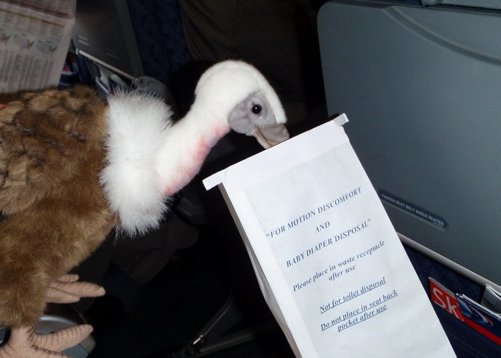 Yes Dan H. was right. The Buzzard did make good use of the barf bag! “It’s tough stuff this air travel,” said the Buzzard on his way to the nations capital.
