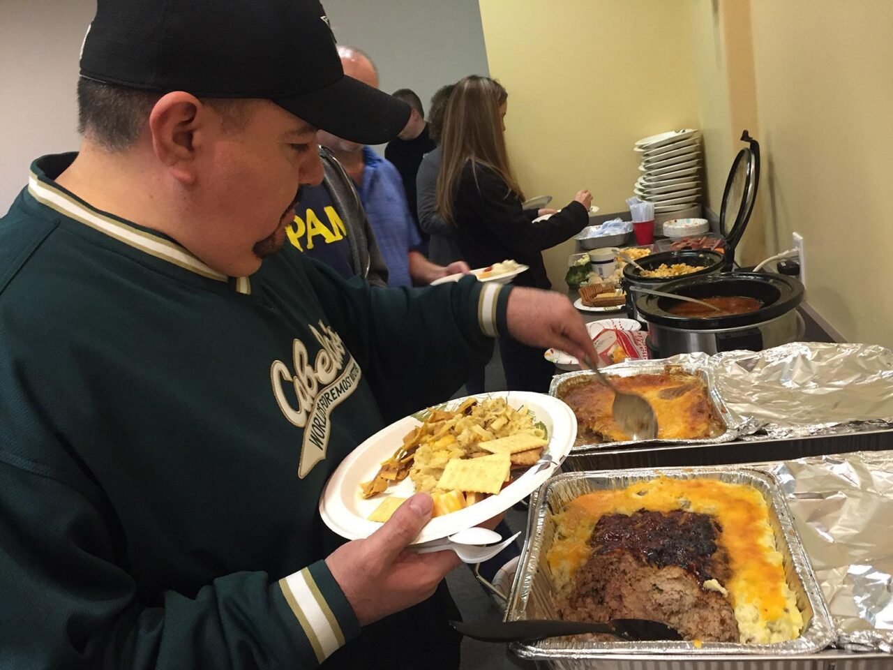 Lonnie and his family cooked up Chicken Pot Pies, Meatloaf baked in a bed of Mashed Potatoes, Brisket Mac n’ Cheese, Shepard’s Pie, Rolls, & a mix of Cubed Cheese, Veggies, & Crackers. Not to be forgotten was the homemade desserts that he brought included Fudge, 2 layer Carrot Cake, Bread Pudding, & much more.