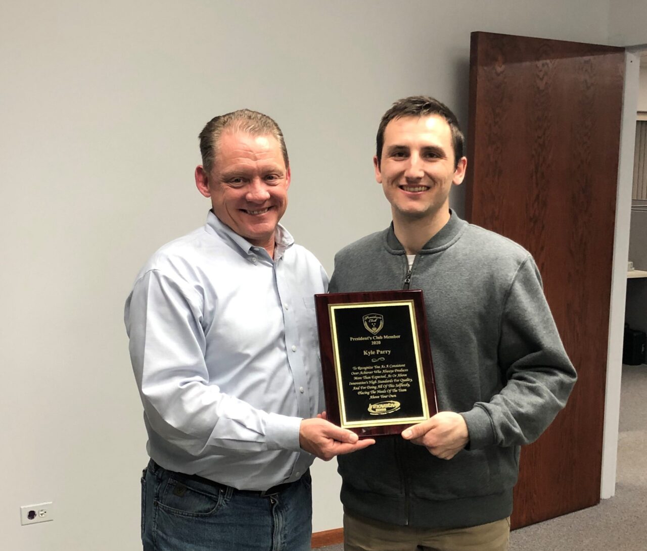 President’s Club (Peer Award) – To recognize you as a consistent over-achiever who always produces more than expected, at or above Innovative’s high standards for quality, and for doing all of this selflessly, placing the needs of the team above your own.